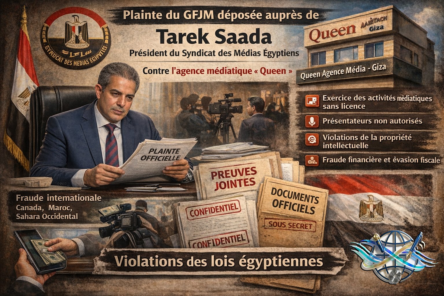 Le Global Forum for Journalism and Media a déposé une plainte officielle auprès du Dr Tarek Saada, président du Egyptian Media Syndicate, contre l’agence médiatique « Queen ».